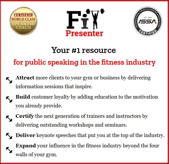 FIT Presenter seeks to raise the professional reputation of the fitness industry through public speaking. It's the #1 marketing tool that your competition is not using.